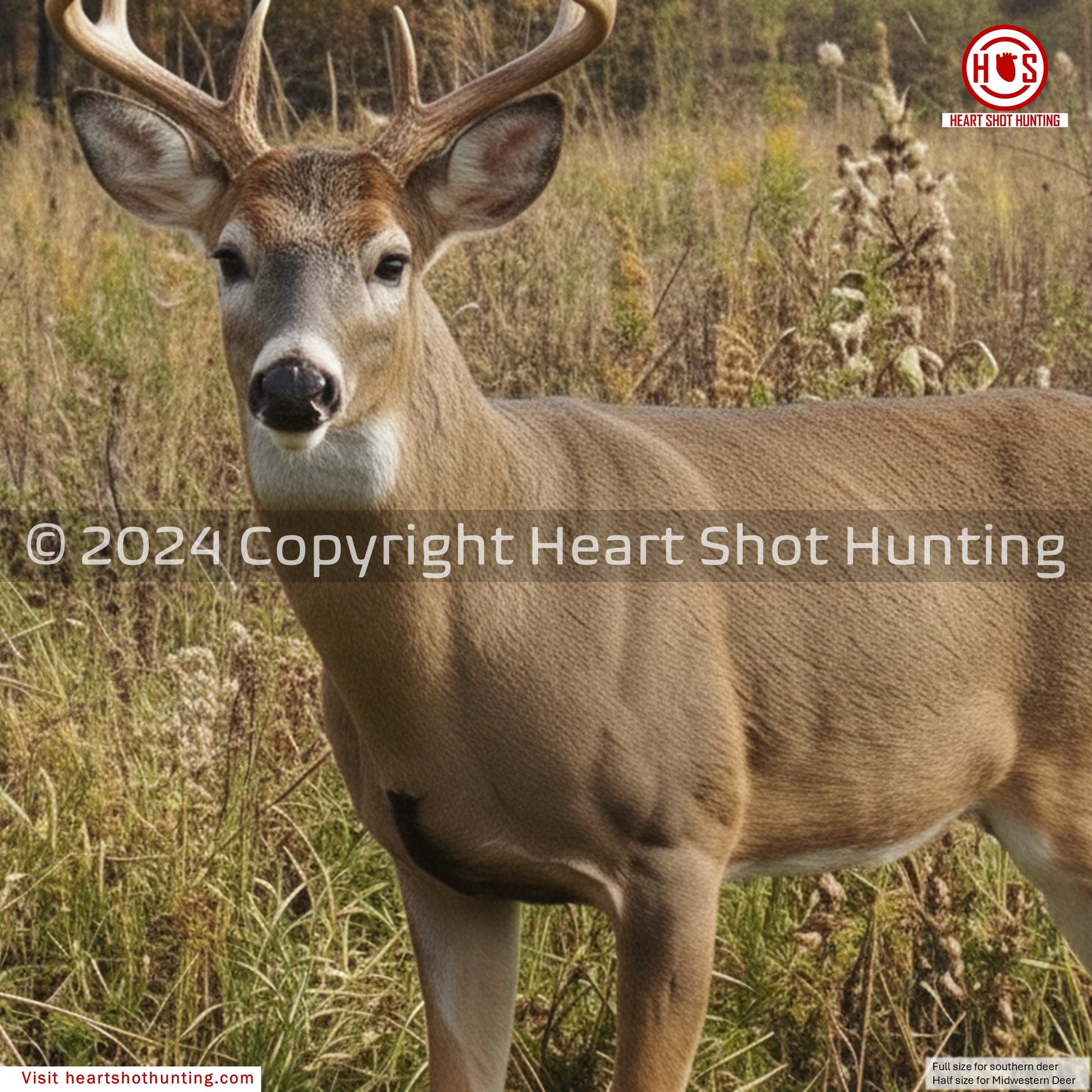 The 24”x24” target size allows for the body and head of a quartering to whitetail to fit at life size compared to an average southern whitetail buck.